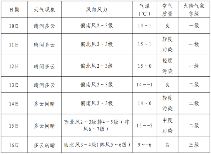 周内最高气温9~15℃