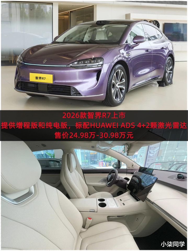 2026款智界R7上市, 搭华为ADS 4+2颗激光雷达, 售价24.98万元起